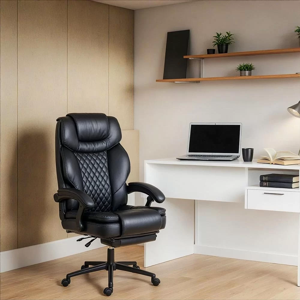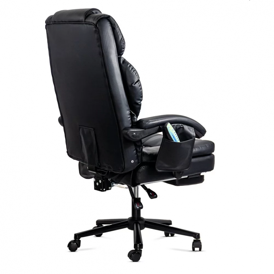 Превърнете работното си пространство в оазис на релаксация и комфорт с черния масажен стол Tabo. Този първокласен стол от еко кожа , с поставка за крака и издръжлива метална основа, предлага едновременно елегантност и усъвършенствана функционалност, така че всеки ден да е продуктивен и релаксиращ.