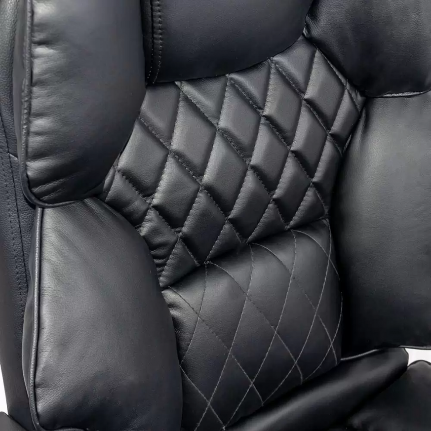 Изработен от висококачествена еко кожа в черно, столът Arturo се отличава със своята изисканост, подчертана от елегантните ромбовидни шевове на облегалката. Ергономичният му дизайн включва а-синхронен механизъм, който предлага възможност за независимо регулиране на височината на облегалката и седалката, гарантирайки опора и персонализиран комфорт.