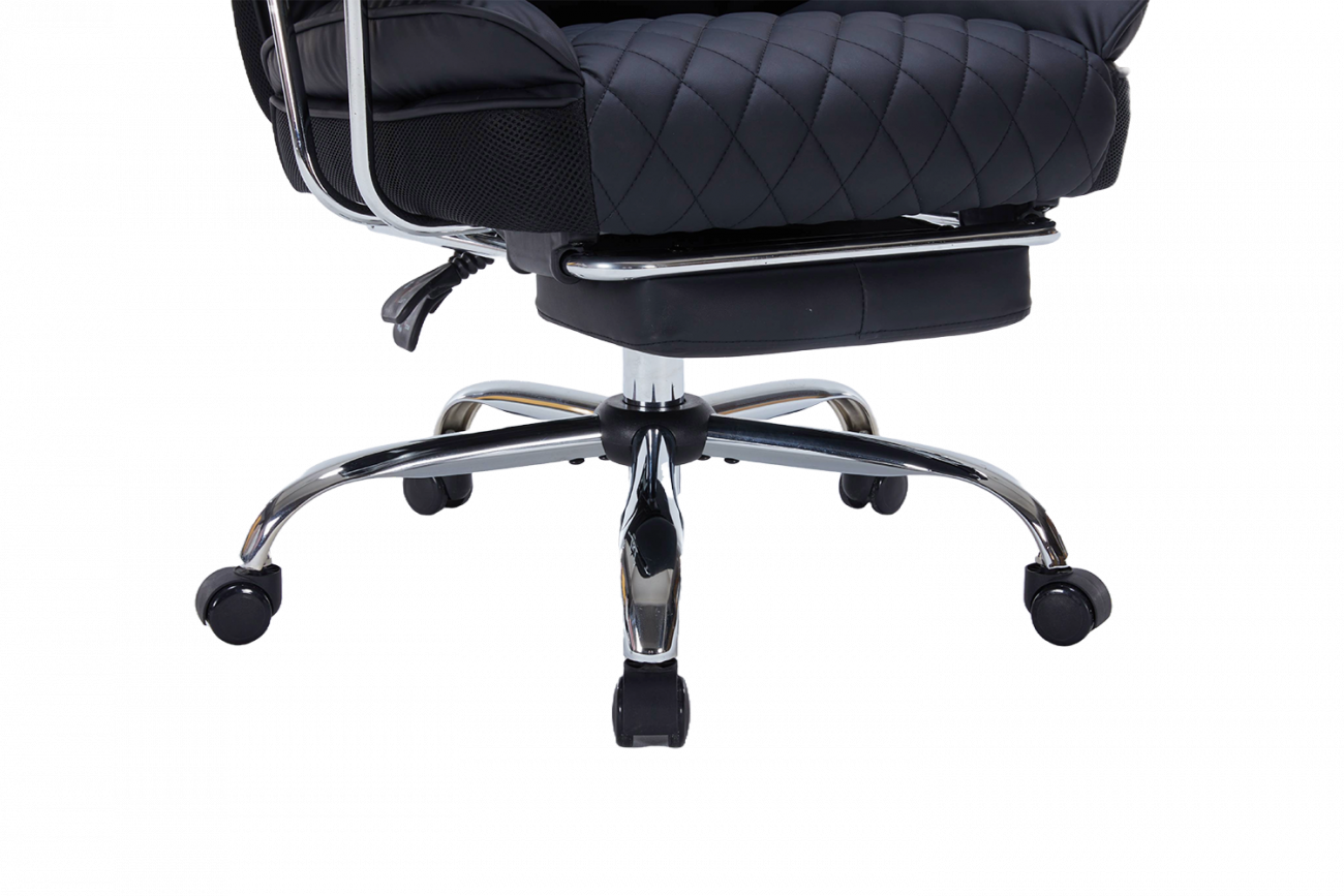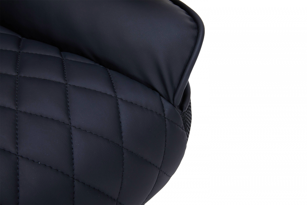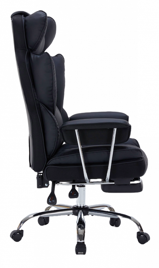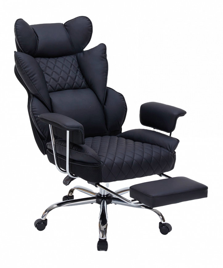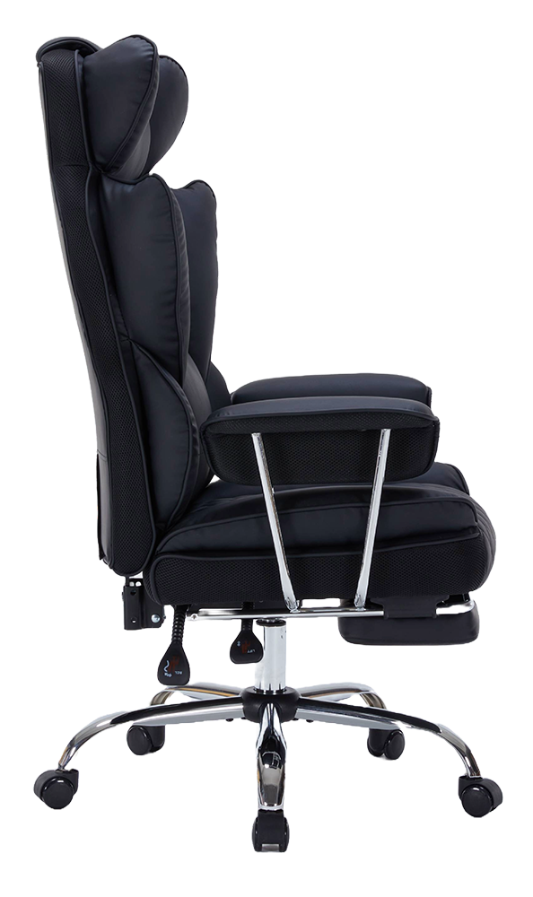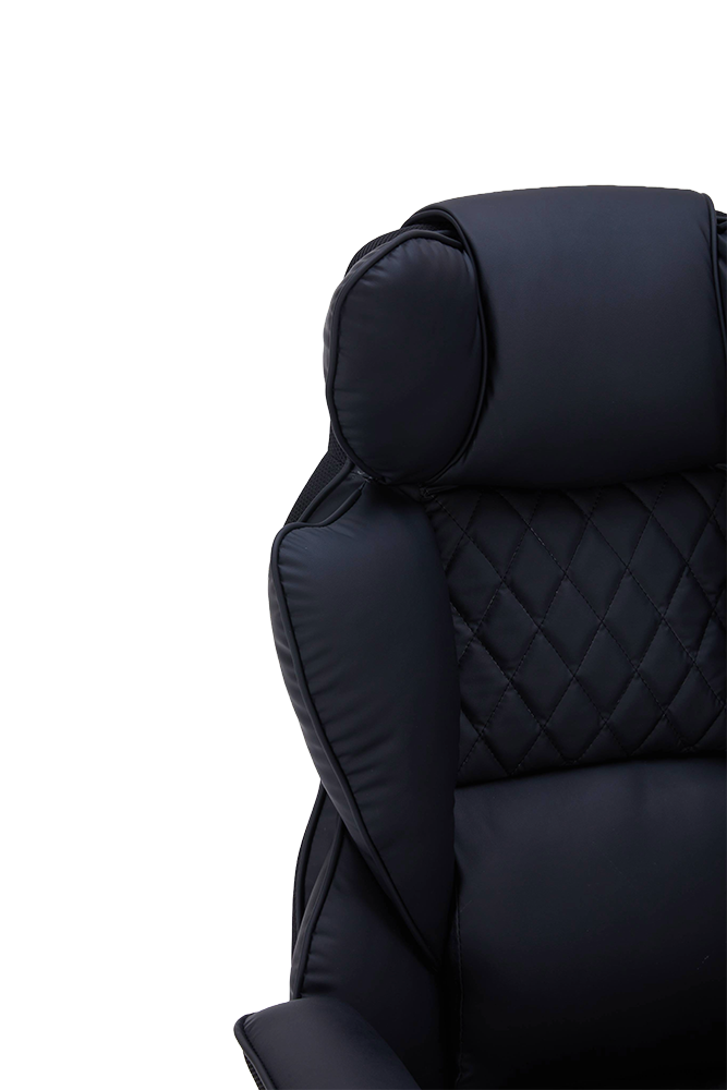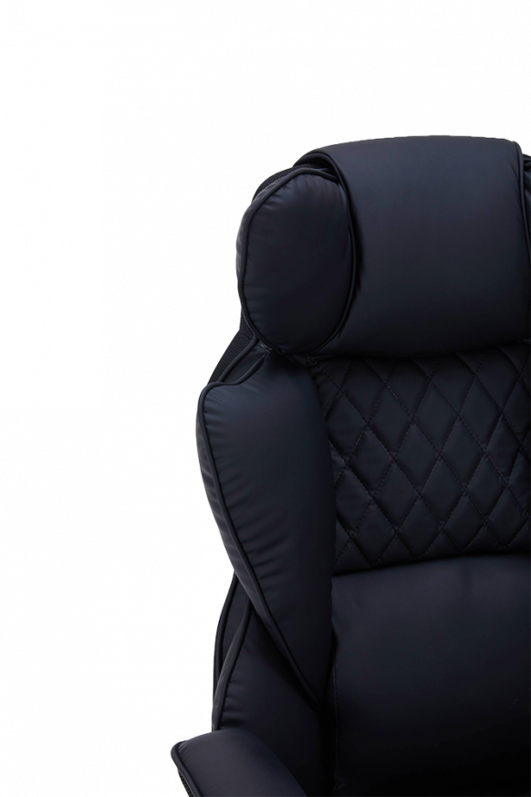 Изработен от висококачествена еко кожа, той впечатлява с изтънчен външен вид и усещане за престиж. Високата облегалка е внимателно проектирана, за да осигури пълна поддръжка на гърба и раменете, а вградената възглавница в лумбалната област гарантира естествена опора и облекчаване на напрежението при продължително седене.