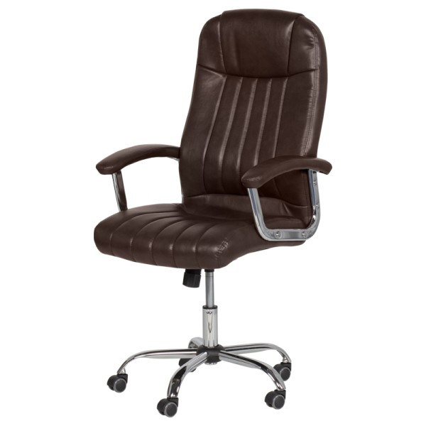 Съчетанието между качествена еко кожа и хромирани метални елементи винаги е изглеждало стилно и луксозно. Във всичките си цветови варианти комбинацията изглежда впечатляващо. Дизайнът на стола е в бизнес стил, но без да е жертвана естетиката. Високата ергономия на стол MATT се вижда от пръв поглед облегалката и седалката следват анатомичните извивки на човешкото тяло, а комфортните подлакътници, тапицирани с еко кожа, повишават допълнително удобството. Столът е оборудван със стабилен и надежден газов амортисьор, осигуряващ регулиране по височина и възможност за завъртане на 360 градуса. Не липсва и функцията за люлеене с възможност за регулиране на твърдостта. Хромираната база пък е снабдена със силиконови колелца, с помощта на които столът се придвижва гладко и безшумно по всякакви повърхности, без опасност от нараняване на подовото покритие. Материал: еко кожа, серия VIVID Размери цяло изделие: 66*51*115-125 см Дълбочина седалка: 51 см Височина седалка: 48-58 см Дължина облегалка: 67 см База: хром Подлакътници: еко кожа + хром Газов амортисьор, коригиране на височина, люлееща функция Цвят: черен, пясъчен, искрящо кафяв Максимално натоварване: 130 кг. Опаковка размер (см) - 76х29х58 - тегло 14,5 кг.