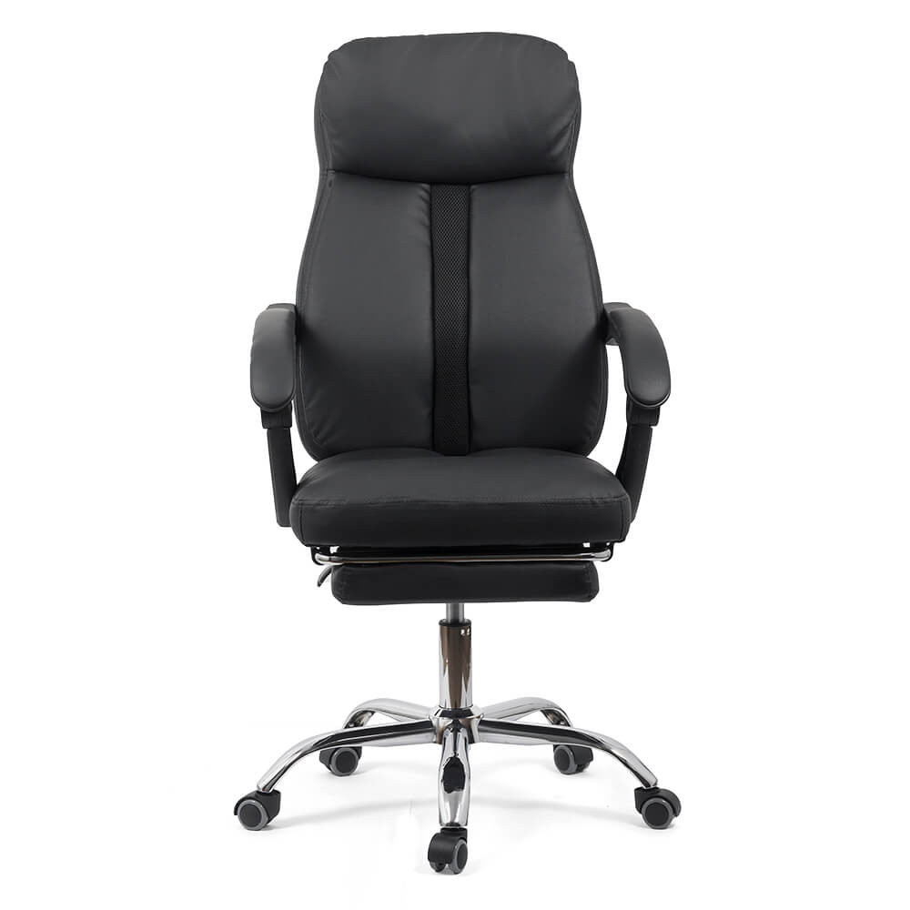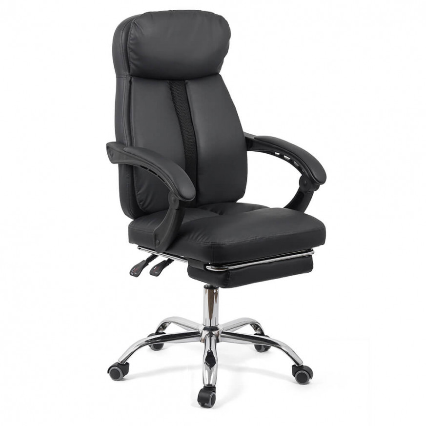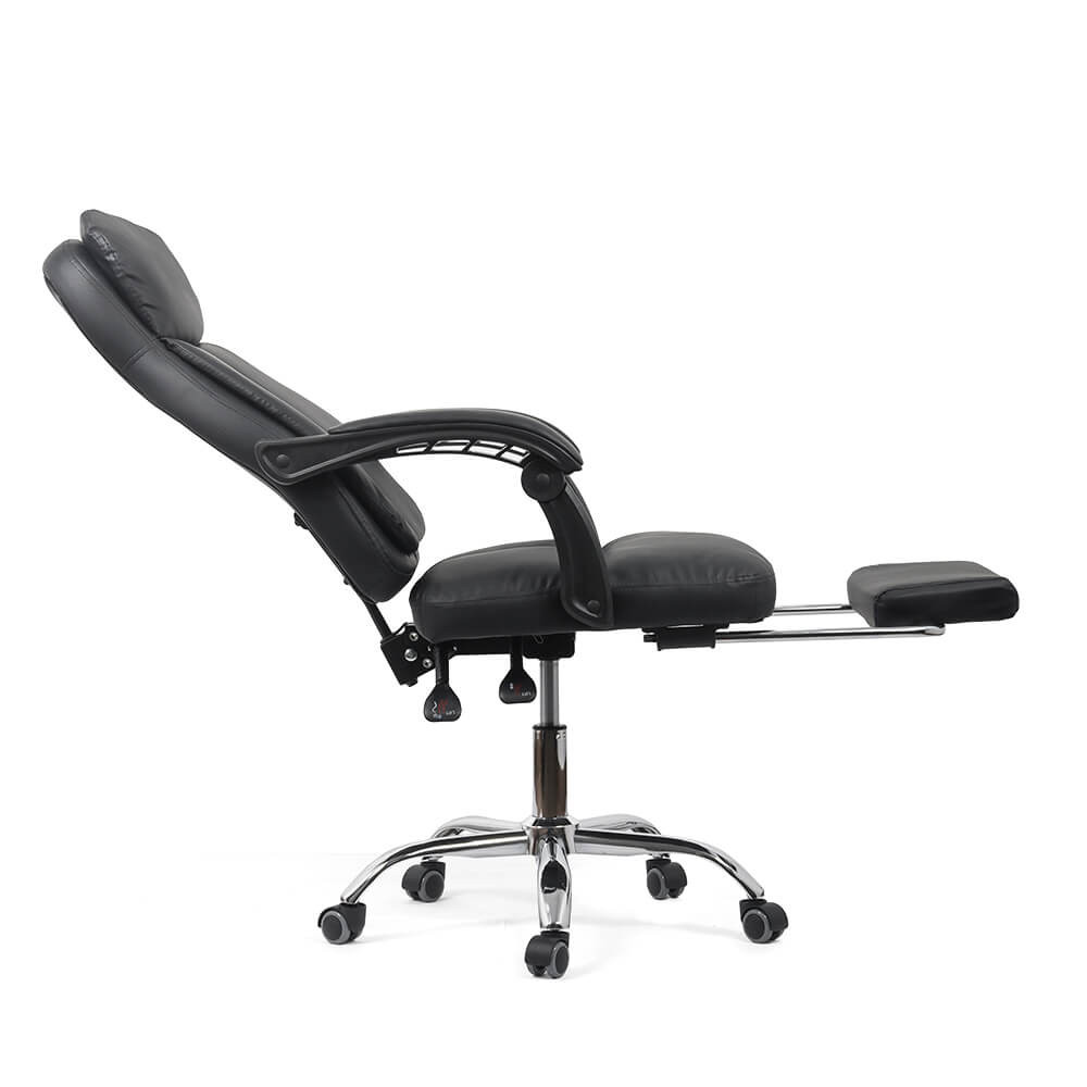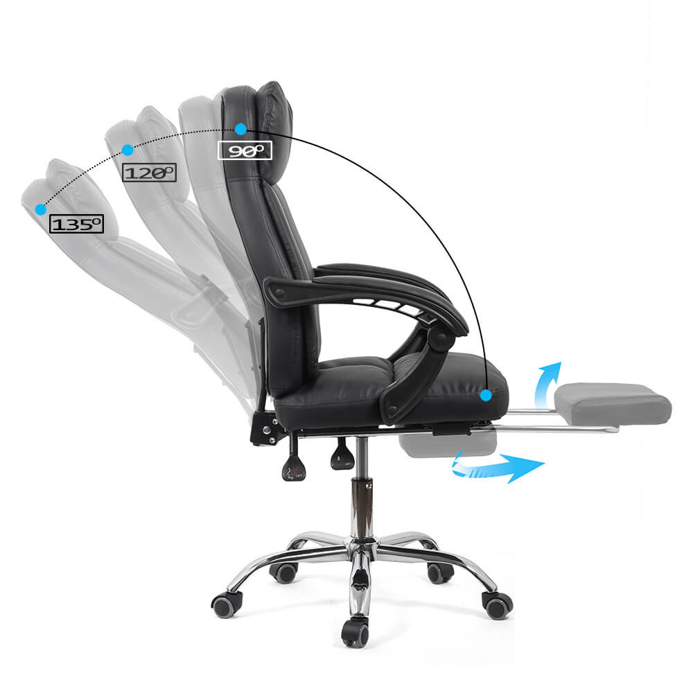 Облегалката може да се накланя до ъгъл от 135 градуса и може да се заключва във всяка позиция. Здравата основа с пет хромирани стоманени рамена издържа тежест до 110 кг.