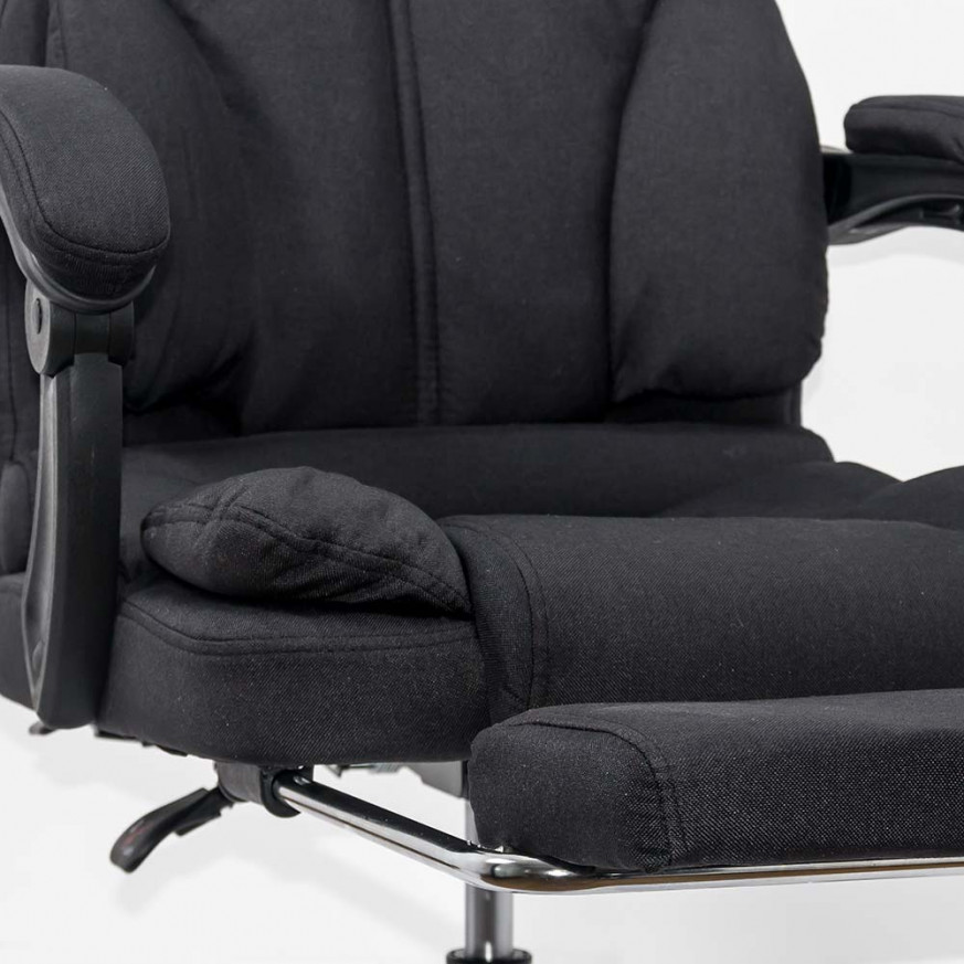 Директорският стол ROBERTO е с ергономичен дизайн, включващ допълнителни възглавници за максимално удобство при седене. Тапицерията му е от дишаща текстилна дамаска в 3 класически цвята (черен, бежов и сив). Моделът е снабден с вградена лумбална опора, широка облегалка с меки възглавници и седалка с висока плътност.