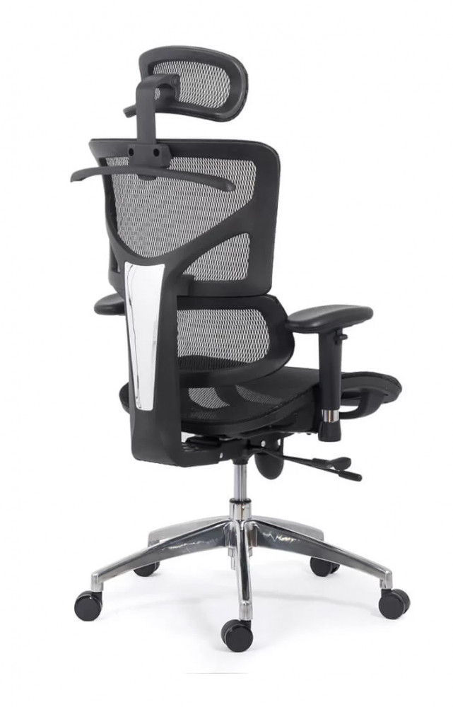 Ергономичният офис стол GILBERT позволява на седящия да регулира ъгъла и височината на подглавника, височината и дълбочината на седалката и подлакътниците. Облегалката е снабдена със закачалка за дрехи, която може да се демонтира. Столът е изработен от висококачествен меш. Максимално допустимо тегло: 120 кг. Колелцата са обвити от гумиран материал, който осигурява защита на пода.