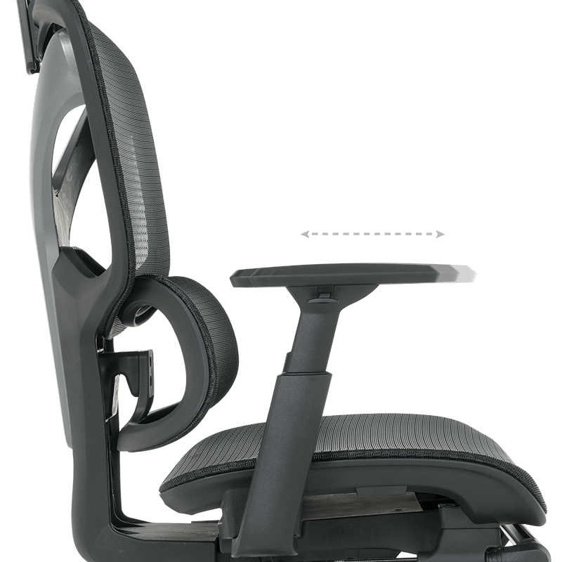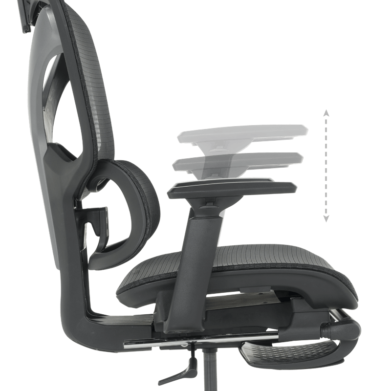• 3D подлакътници с регулиране на височината, ъгъла и падовете напред-назад