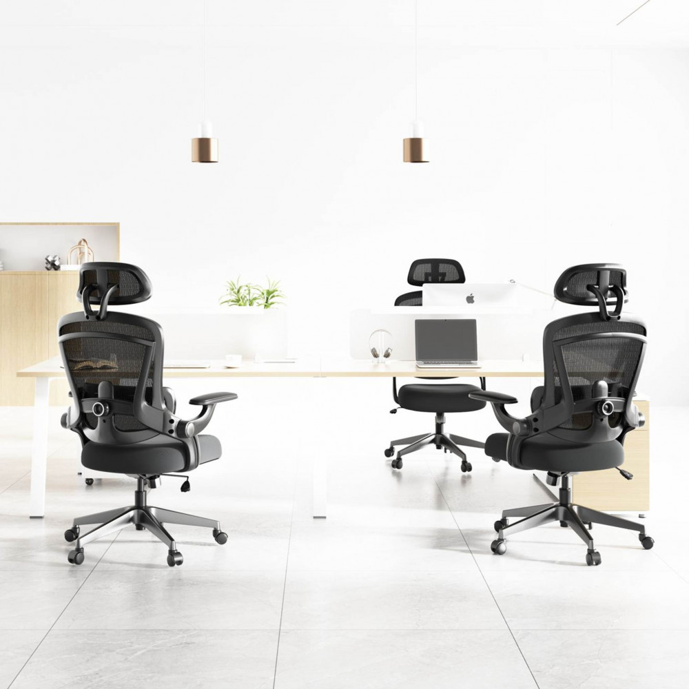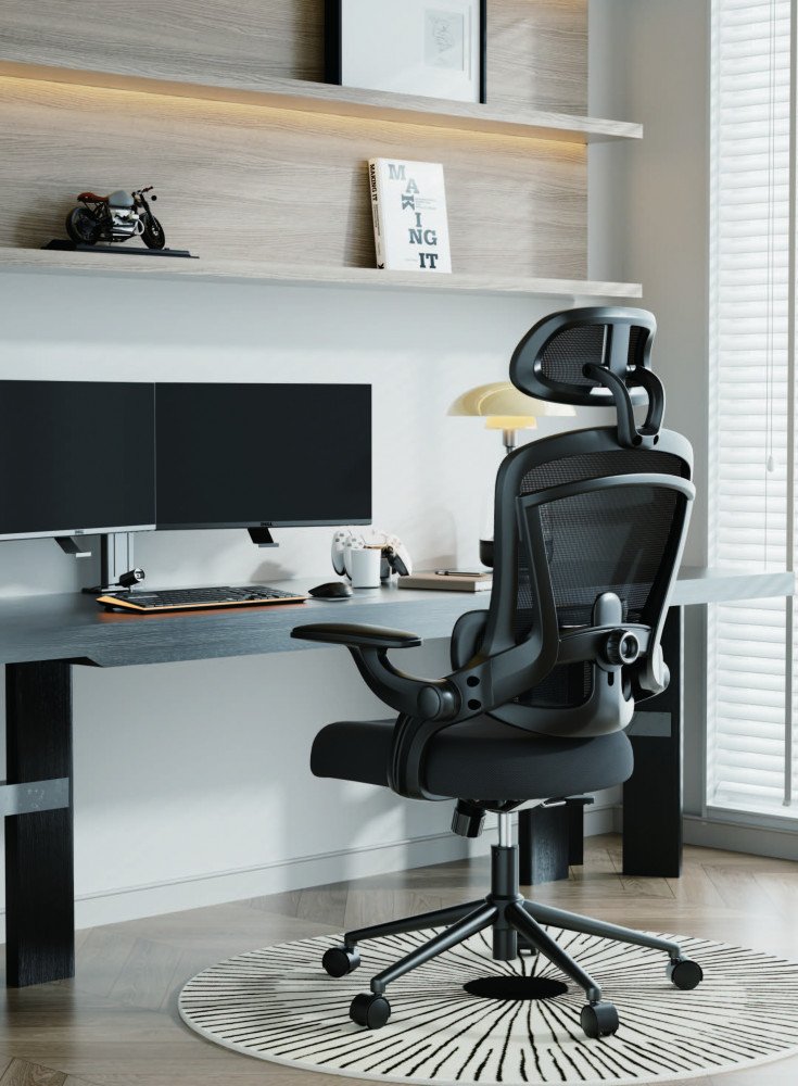 ✔️Прибиращи се подлакътници (90° нагоре) – за повече свобода на движение и възможност столът да се прибере лесно под бюрото.