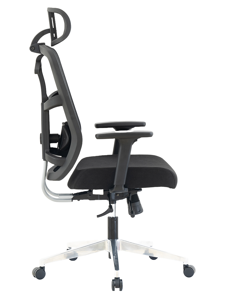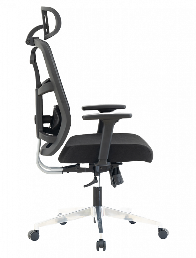Седалката е изработена от високоплътна формована пяна,облечена в издръжлива дамаска, катд запазва формата си и не се деформира. Облегалката е от дишащ меш, който осигурява за постоянна циркулация на въздуха и поддържа поддържайки гърба ви свеж през целия ден.