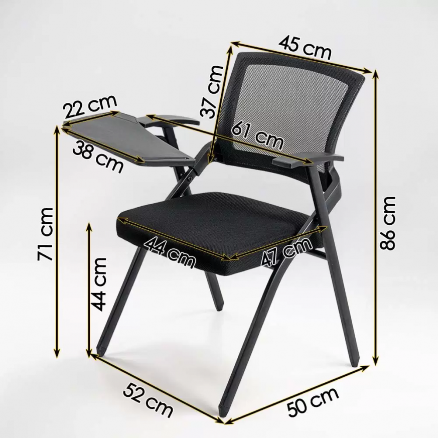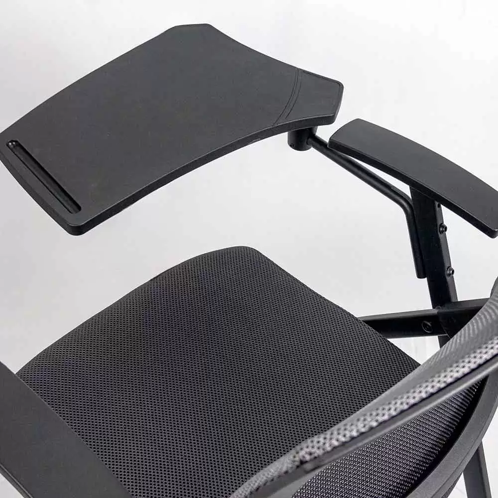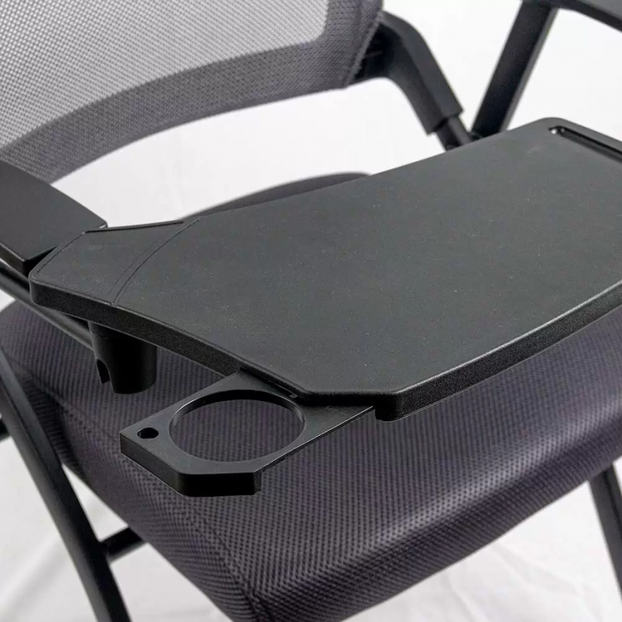 Оборудван със сгъваема полипропиленова маса, столът осигурява допълнително работно пространство. Масата може да се регулира или повдига според нуждите.