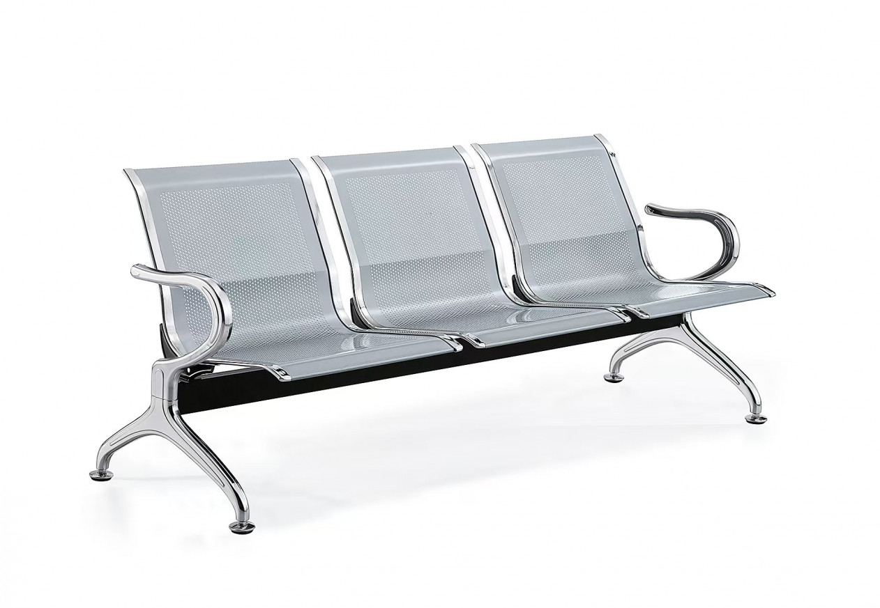Удобна посетителска пейка, която разполага с 3 места за сядане. Подходяща за обществени и офис сгради,чакални и други. Краката и подлакътниците са изработени от алуминий, а седалките от перфорирана ламарина.