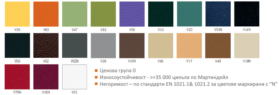 Наличен на склад в черно (V-04)  със срок на доставка до 2 работни дни. Столът може да бъде изработен в другите цветове от гамата на еко кожа V без оскъпяване за срок до 25 работни дни.
