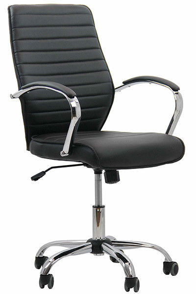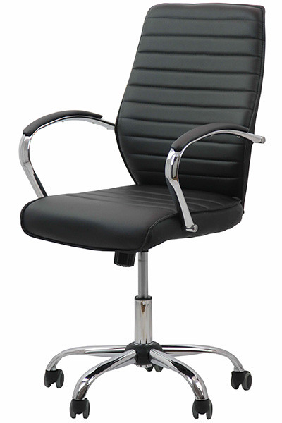 База от хромирана стомана Полипропиленови колелца Газов амортисьор Хромирани подлакътници тапицирани с еко кожа Седалката и облегалката са тапицирани с еко кожа