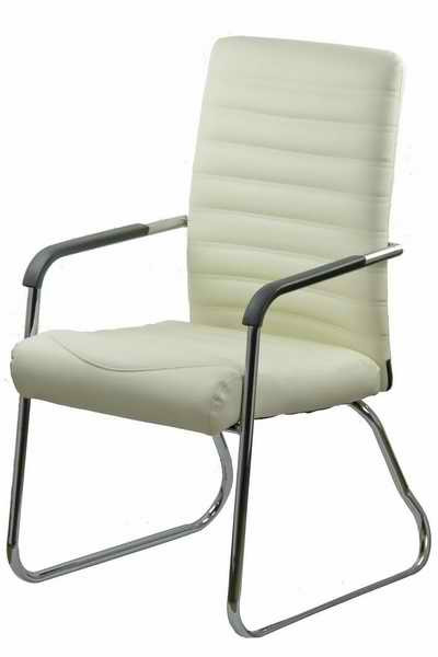 Посетителски стол с метална рамка и хромирани облегалка и седалка, тапицирани в еко кожа. Стол, който ще допринесе за модерната визия на всеки офис и конферентна зала.