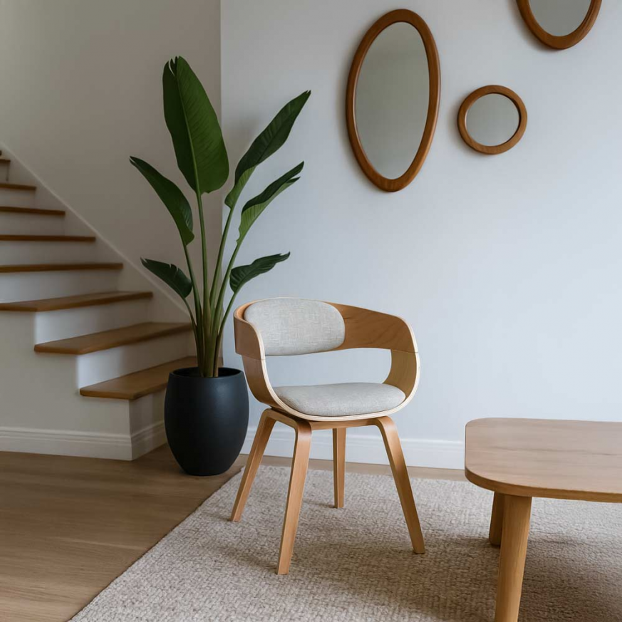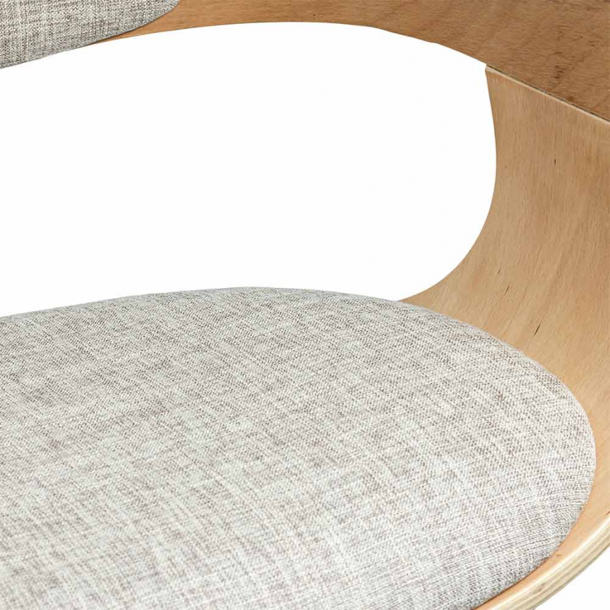 Трапезният стол Linda в бежово съчетава модерен дизайн с ежедневен комфорт. Облегалката и седалката са тапицирани с бежова дамаска, лесна за поддръжка и приятна на допир. Закръглената форма на облегалката осигурява опора за гърба, а основата от огънато дърво придава естествена елегантност.